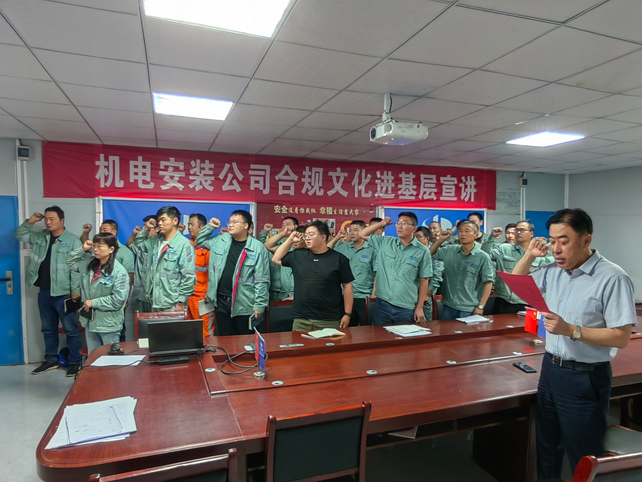 近日,公司党委书记、董事长余峰到第十三项目部赵石畔煤矿工地,开展“机电安装公司合规文化进基层”主题宣讲活动。活动中,余峰从了解合规的背景及定义、认识合规管理...